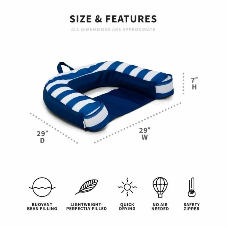 You’ll love this ultra-comfy bean filled float that has a more structured design with a conveniently attached sling for long fun days in the pool. Keep your favorite beverage close in the built in cup holders and relax in style.