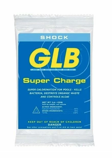 Fast-acting and quick-dissolving, GLB Super Charge Shock is a multi-purpose granular product that sanitizes, clarifies, prevents algae and shock treats your pool. Its highly effective formula is convenient, easy to use and won’t over stabilize your pool water. GLB Super Charge leaves no residue and is safe for use with all pool surfaces.