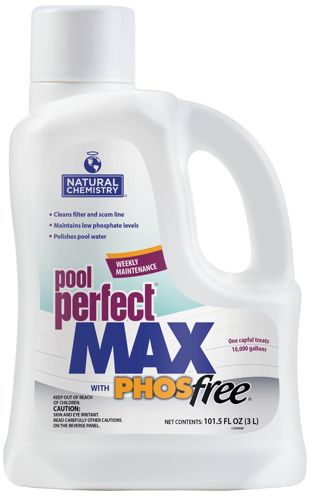 Take pool maintenance to the next level! Pool Perfect Max is Natural Chemistry’s premier maintenance formulation. Added weekly, this product reduces the amount of time and effort you have to spend on pool care. Its key benefits include: working as a continuous filter cleaner, removing maintenance levels of problem-causing phosphates, reducing scrubbing of scum lines and waterline ring -polishing water to sparkle like never before. Simply add one capful per 10,000 gallons of pool water each week so you can sit back and relax poolside!