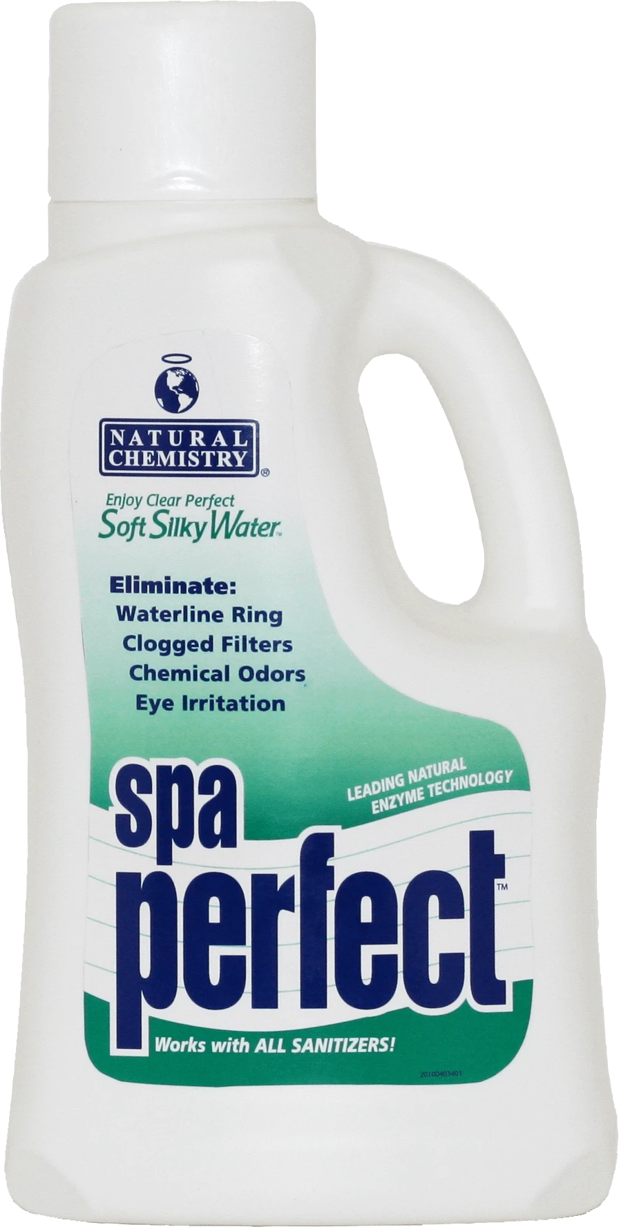 Spa Perfect‘s SMARTZyme™ technology reduces unwanted non-living organic contaminants such as: body oils, cosmetics, suntan lotions, hair products and so much more! No more waterline rings, cloudy water or unpleasant odors. Spa Perfect also works as a continuous cartridge filter cleaner. Contains 1, 2L bottle.